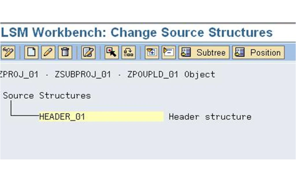 - In the step ‘Maintain Source Structures’ you define the structures of the object with name, description and the hierarchical relationships: